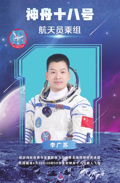 新华社酒泉4月24日电 我国瞄准4月25日20时59分发射神舟十八号载人飞船,飞行乘组由航天员叶光富、李聪、李广苏组成。