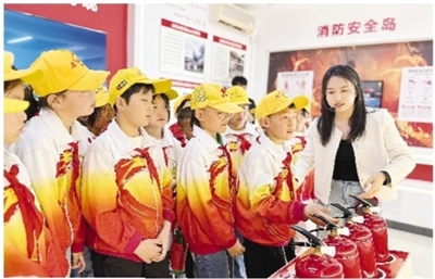 4月23日上午,潞州区东街街道城隍庙社区新时代文明实践站开展“开启科普研学之旅 护航儿童健康成长”为主题的志愿服务活动,来自潞州区东关小学的60余名师生走进城隍庙社区三楼的公共安全科普馆,“零距离”学习消防知识,“沉浸式”体验消防安全。 李嘉宁 摄