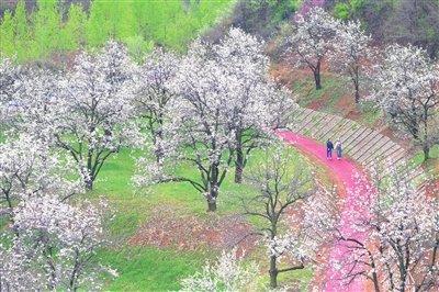 近日,长子县大堡头镇兴旺村梨园内的梨花迎来盛花期,梨花争相开放,市民踏青赏花,乐享春日休闲时光。本报记者 牛红岩 摄
