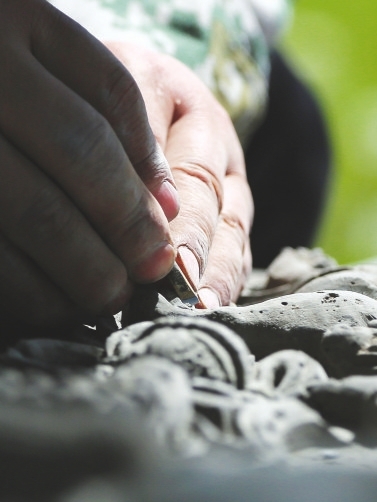 今年45岁的原晋旭是上党区八义镇红绿彩村(南山)人,他潜心钻研砖雕、石雕和木雕技艺30余年,现为市级非物质文化遗产“上党砖雕”项目代表性传承人。在他手中,上党砖雕手艺得以复活并赋之以创新。“以砖为纸,以刀代笔,只要开始雕凿,好像外面的世界都与我无关了。”原晋旭说。