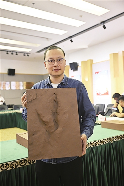 中国地质大学(北京)副教授邢立达介绍,两种不同的恐爪龙足迹中,较小形态类型的足迹平均长约11厘米;大型二趾足迹共有6枚,其中5个足迹组成了一道行迹,足迹保存清晰且足趾细长,其大小远超之前发现的山东驰龙足迹的长度(28.5厘米)。