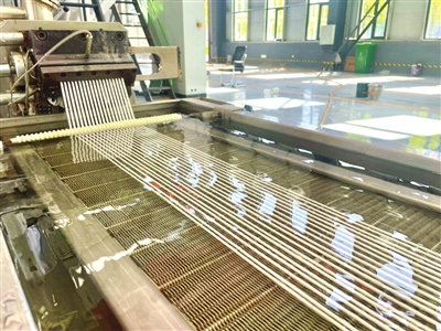 在山西潞鑫新农生物降解科技有限公司PPC生物降解改性线(一期)项目的生产车间内,工人们正在开足马力,全速生产,用于制作可降解地膜的原材料PPC全生物降解改性树脂不断输出。刚生产出来的PPC全生物降解改性树脂呈白色条状,该公司总经理田王东拿着这个材料直接将它拉长40厘米:“这个原材料韧性非常好,做成地膜也不怕拉断。”