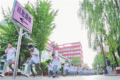“注意,地震,请就地避震!”广播响起口令,学生们迅速钻到课桌下,约1分钟后,“安全撤离”口令响起,各班学生都在老师的指导下,用书包或书本保护头部,有序按照指定逃生路线撤离至操场等安全地带。这是长治六中开展防震减灾主题教育系列活动中的一幕。