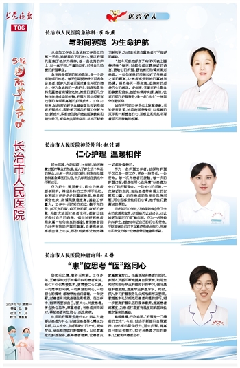 在多年的工作中,让她深刻体会到了生命的脆弱和宝贵,这些经历让她成长,也让她更加坚定的“医”路向前。作为一名神经外科护士,她始终牢记自己的初心和使命,不断提高自己的专业素养和综合能力,用爱心和专业为每一位患者带去健康和希望。