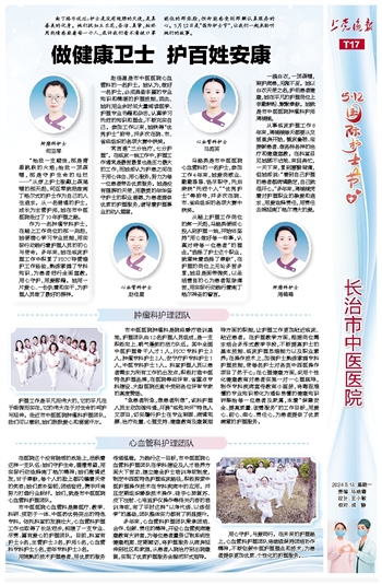 护理工作是平凡而伟大的,它的平凡在于细微而实在,它的伟大在于对生命的呵护与延伸。走近市中医医院肿瘤科护理团队,我们可以看到,她们殷殷爱心和滴滴汗水。