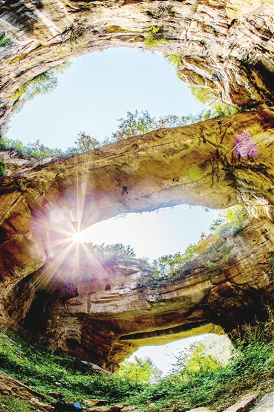 走在红山石铺成的山间小路,我探访过黎城三孔桥,拍下大自然的雄奇壮丽。我踏着狭窄崎岖“猫路”,拍鹅屋鬼斧神工天生桥上的红叶。我徜徉在太行天路,俯拍它的迂回蜿蜒,跌宕起伏,阳光照耀下,似一条穿梭于太行山间的银蛇。