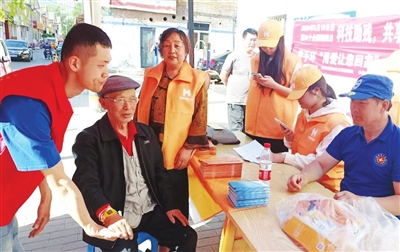 本报讯 5月12日,潞州区常青街道角沿村社区联合市阳光困境儿童帮扶协会共同开展“发放黄手环 用心点亮爱”公益活动,为老年人送上一份特别的关爱。