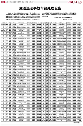 交通违法事故车辆处理公告