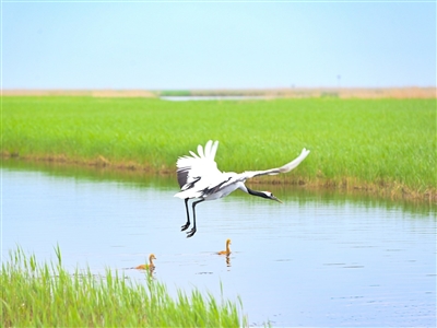 当前,在黑龙江扎龙国家级自然保护区,人工散养丹顶鹤孵化的“鹤宝宝”开始跟随父母进行“适应训练”。据了解,在保护区散养的丹顶鹤,是经过人工繁育的“过渡种群”。它们的后代,在长大后将被野化放归。