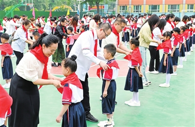 与此同时,全市各级少先队组织广泛开展“红领巾爱祖国”新队员集中入队仪式,通过充分的队前教育、规范的入队程序和庄严的入队仪式,切实增强少先队员的光荣感和组织归属感,引导少先队员继承和弘扬少先队的光荣传统,从小听党话、跟党走,争做新时代好队员。