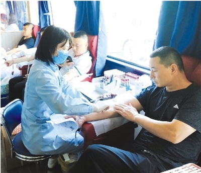 在献血车上,大家拿着表格依次量血压、抽血化验,通过严格筛选,符合标准的人员坐在献血椅上,卷起衣袖,配合医务人员进行血液采集。今年36岁的来志强,已经连续多年参与无偿献血活动,在采血过程中他和同事有说有笑,没有一丝顾虑。30岁的陈涛是第一次参与无偿献血,他说心里稍微有一些紧张,一起前来献血的几个朋友在现场和他开起了玩笑,以缓解他的紧张情绪……参与献血的人员中,不少人报名成为造血干细胞捐献志愿者。2021年,员工丁建慧捐献造血干细胞,为一名5岁血液病患儿带去了重生的希望;2022年,90后小伙牛越在北京某医院成功捐献了造血干细胞,挽救他人生命。他们用自己的行动为“生命之河”贡献了自己的力量,生动诠释了关爱社会和无私奉献的精神。