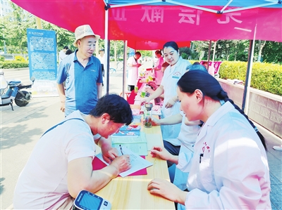 本报讯 记者郑学兵报道:6月14日,市卫生健康委员会联合市中心血站、市红十字会以及我市部分医疗机构在市中心血站门前开展了2024年世界献血者日宣传活动。