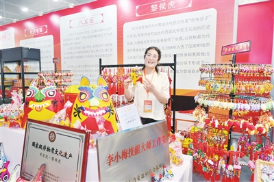 “这布老虎真威武!”6月18日上午,在山西潇河国际会展中心N7展厅,来往人员被李小梅做的黎侯虎和衍生饰品所吸引,纷纷上前询问、购买。