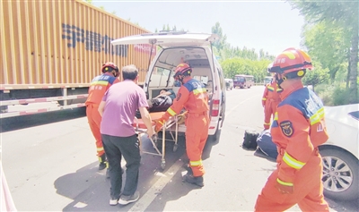 本报讯 记者王晶晶 通讯员李前锋报道:6月22日13时8分,沁源县石壑村路段拐弯处一辆轿车与半挂车相撞,轿车驾驶员被困,情况危急。