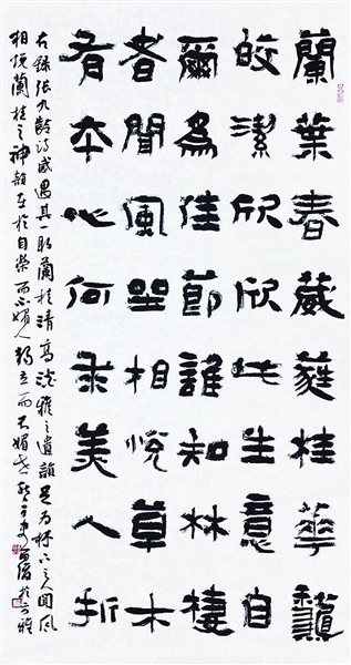 花容娱其目,花香美其心。神朗朗兮,以其清逸而爽然可适;骨铮铮兮,以其遒劲而风规自远。故花者,向来与美人相伴,与幸福相随,与好运相偕,与友谊相守。其意之祥也,能不牵情乎?余曾以花入诗,缘情而书,发力于提按与使转,张扬着自信之真我,以予人朴素而亲和的审美感受为旨归,一书而就。寄而有得,荣幸入展。盖无论是诗书创作之美学体验,抑或是入展获奖之喜悦来袭,欣欣然,皆乐之于心也。