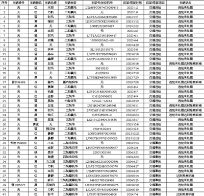 根据《中华人民共和国道路交通安全法》第一百一十二条、《中华人民共和国道路交通安全法实施条例》第一百零七条、《道路交通事故处理程序规定》(公安部第146号令)第五十八条之规定,下列41辆因交通违法或交通事故被黎城县公安局交通警察大队依法扣留的车辆,驾驶人、所有人或管理人应自此公告发布之日3个月内,持公安机关交通管理部门强制措施凭证及其他相关手续到扣留车辆的交警大队接受处理,逾期不来接受处理的,公安机关交通管理部门将对扣留的车辆依法处理。