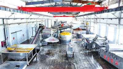 从选料间移步到忙碌的生产车间,空气中散发着浓浓的麦香。生产车间,酿酒车间里手提肩扛、挥汗如雨的场景不复出现。取而代之的是自动化运行。4架机械臂左右挥动,上甑作业;不间断的行车组前后往复,来回翻倒酒醅……在自动化、半自动化酿酒车间,映入眼帘的“科技工匠力”让人耳目一新。“我们每周对工人进行培训,确保用智能化、数据化维持每一滴太行山酒风味的稳定,同时辅以地缸发酵的传统技艺,这才有了太行山酒清香甘甜的独特口感。”太行山酒业有限公司厂长郝持政说。