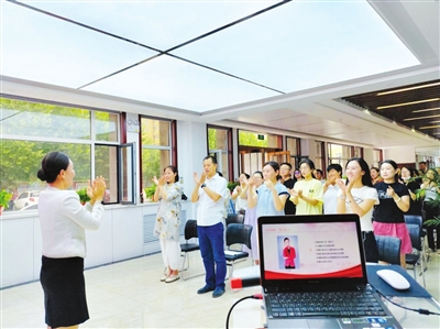 在当天的培训中,市职业高级中学教师王文娟通过图文讲解、亲身示范的方式,向参训人员讲解了职业礼仪的基本要求,并就工作中常见的表情礼仪、接待服务礼仪、沟通礼仪等进行示范。为增加培训的趣味性和参与度,培训中还穿插了互动演示环节,大家踊跃参与,现场氛围轻松活跃。