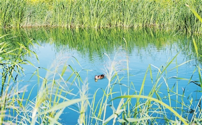 据介绍,古城湾人工湿地种植了大量水生植物,在处理污水的同时还具有良好的景观效果和生态修复作用,如今的古城湾人工湿地已成为市民和游客游玩的好去处。 新华社记者 任玮 摄