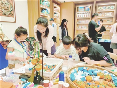 建筑纸雕灯,长治古建装饰盘、陶瓷杯,书签,明信片,茶具套装,冰箱贴……8月11日,长治学院美术系文创作品亮相“东盟-山西非遗文创展示会”大学生文创集市,瞬间吸引了观展嘉宾的目光,这些作品将传统技艺与现代审美完美结合,展示了长治历史的厚重与现代的活力。