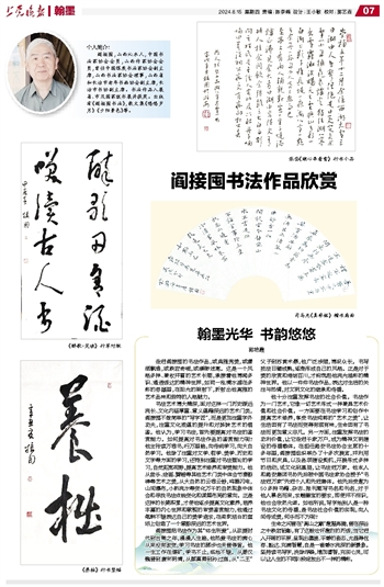 走进阎接囤的书法作品,或典雅秀美,或潇洒飘逸,或跌宕奇崛,或缥缈迷离。这是一个风格多样、兼收并蓄的艺术长廊,承接着他博闻多识、通透练达的精神世界,如同一泓清水盛在多彩的容器里,在阳光的照射下,折射出他高雅的艺术品味和独特的人格魅力。