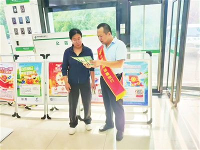 积极挖掘邮政点多面广的网络优势,强化邮银联动,在邮政投递车上张贴“金融为民谱新篇 守护权益防风险”宣传标语,在邮件上粘附金融知识宣传折页,扩大宣传触角。