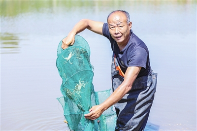 “自从家门口有了蟹塘,我就在这里打工,一年能干6个多月,有近2万元的收入。关键还不耽误家里的农活,日子越过越有奔头。”40多岁的孙卫东之前一直在家种地,收入微薄,自从村里搞起了养蟹产业,跟孙卫东一样的村民们成为直接受益者。
