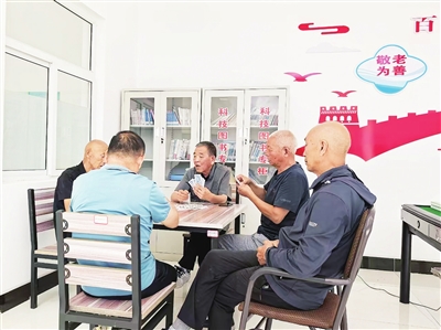 上午9时,阳光明媚,秋色正好。微子村老年人日间照料中心大厅宽敞明亮,大厅内布置得既实用又充满生活气息,几位老人围坐在一起,或低头阅读,或聚精会神地下棋,脸上洋溢着满足而舒心的笑容。