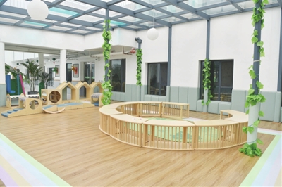 走进科教小象湾托育中心,园内游乐设施、感统训练室、电子阅读室等功能分区丰富多样。铺满软垫的活动场地上,几名婴幼儿在教保师的看护下尽情玩耍嬉戏。这个托育中心为孩子们提供了一个充满欢声笑语的温馨环境,让他们在玩耍中学习,学习中成长。