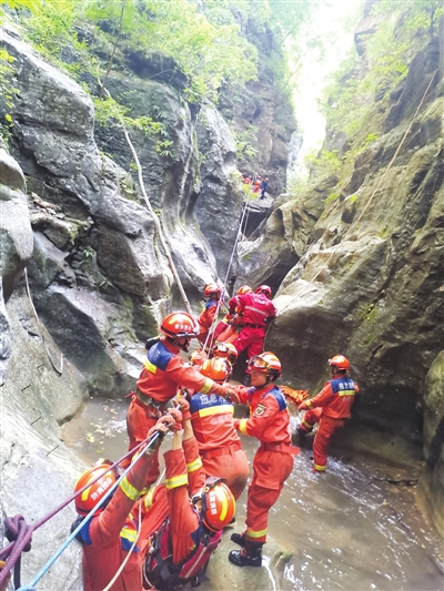本报讯 记者王晶晶 通讯员李前锋报道:9月11日,壶关县树掌镇清泉村附近探险路线(以下简称“鲤鱼缸”),五名“驴友”山中探险,一人在爬山途中不慎坠落峡谷,壶关县消防救援大队消防员紧急赶赴现场,展开救援。
