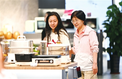 9月17日,消费者在天津京东MALL超级体验店选购家电。