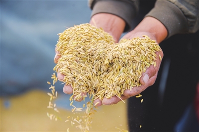 “襄缘·花海”幸福田园农业种植项目技术员乔书杰正在田间察看稻穗数量和颗粒饱满度,他说:“我们这个项目种植的是丝苗米,这个品种的产量、品质和综合抗性非常突出。同时,运用‘幸福农法’,以天然植物提取物代替化肥,利用生态平衡和中药疗法防治病虫害,修复土壤,生产的水稻不含农药化肥、抗生素、激素等,从目前的产量来看,我们是非常满意的。”