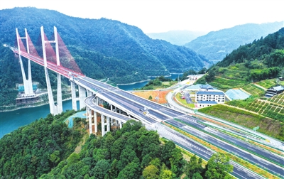 图为10月20日拍摄的贵州剑黎高速南孟溪大桥和南加互通(无人机照片)。