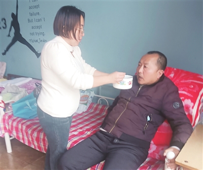 由于成俊脊椎严重受伤,不能平躺睡觉,每晚需要翻身十余次,刘青几乎没有睡过一个安稳觉。每晚她都仔细算着时间,帮丈夫翻身。清晨又早早起床,为丈夫洗漱换衣、吃早饭,然后做康复训练。