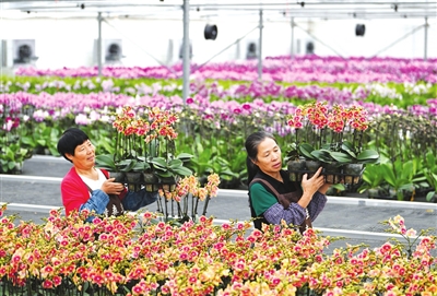 天津市西青区张家窝镇农业产业园区占地面积5000余亩,以种植花卉、有机果蔬等为主导产业,是天津市现代农业重点示范园区。眼下,园区内的蝴蝶兰、草莓等花果都到了集中上市的时节,温室大棚内一派繁忙景象。