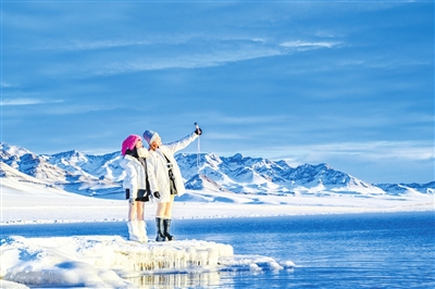 赛里木湖位于新疆博尔塔拉蒙古自治州境内,是新疆海拔最高、面积最大的高山湖泊。冬至后,湖区气温可降至零下20℃左右,湖面结冰,形成独特的“冰馕”景观。湖冰与远山积雪相映,景色壮美,吸引着游客前来欣赏。