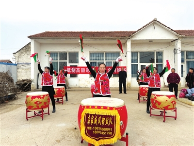 12月25日,在长子县南陈镇苏村,“高家姐妹”威风锣鼓志愿服务队紧扣“抵制高价彩礼 倡导文明婚俗”主题,以鼓乐、舞蹈等多种形式大力宣传移风易俗新风尚,为农村精神文明建设凝心聚力。