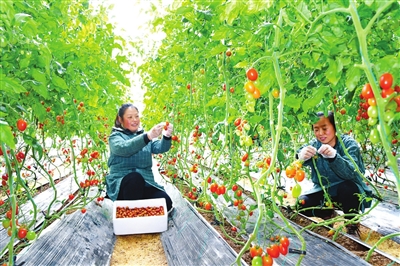 12月25日,长子县潞硕丰农业科技有限公司种植基地内一派繁忙景象,无公害小番茄正式迎来采摘季,饱满圆润、色泽鲜艳的小番茄挂满枝头,吸引了众多游客和采购商前来采摘购买。