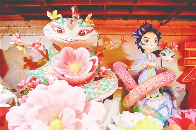 除了在“网红”款上下功夫,明年的生肖蛇的花灯设计制作也是重头戏。对此,设计师张磊表示,明年是蛇年,我们在设计时既深度挖掘了蛇在传统民俗文化里的内涵,又加入了现代元素,采用色彩绚丽的材料塑造蛇身,使其在灯光映照下更好看。同时,为了节能,我们选用了LED灯,结合现代科技手段,为彩灯增添互动体验功能,例如,通过传感器、投影技术等,实现观众与彩灯互动。