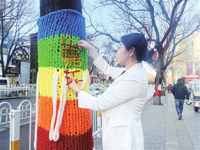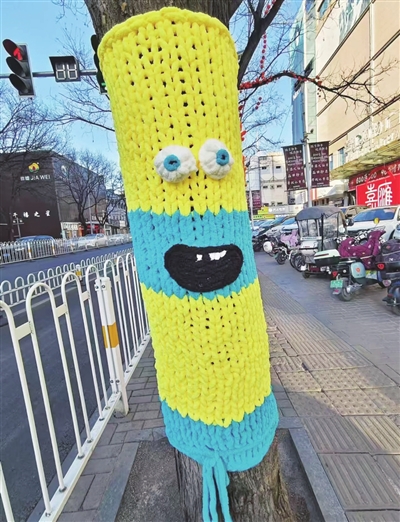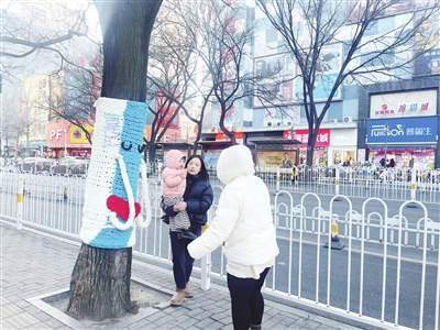 “色彩鲜艳的毛衣让人眼前一亮,大树看起来不再单调,使我心情愉悦。”市民张女士说,大树“穿”毛衣装饰了街道,让人看了很轻松,心里也温暖。