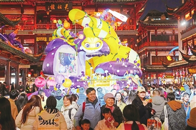 2025年1月1日,2025上海豫园民俗艺术灯会正式亮灯。今年灯会的主题延续“山海奇豫记”的故事,开启丛林篇的讲述。作为国家级非物质文化遗产代表性项目,走过30年的豫园灯会已成为上海标志性新春文化活动和城市文化名片。