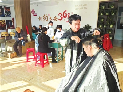 除此之外,每逢周五“便民服务日”,不少人便在长安社区健康义诊服务点前排起长队,来自社区卫生站的志愿者逐一为老年人量血压、测血糖,为前来咨询的居民耐心解答健康方面的疑问,并给予相关建议。“今天的便民活动非常好,贴近老百姓的日常生活,解决了我们的实际问题。”正在等候理发的李大爷高兴地说。