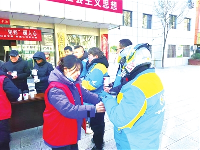 本报讯 农历十二月初八,是传统的腊八节,有喝腊八粥的习俗。腊八节到来之际,潞州区梅辉坡社区积极落实“四双”机制,抓实“双服务”,联合报到单位市财通公司开展“腊八送温情 ‘粥’到暖人心”主题党日活动,为环卫工人、外卖小哥、居民群众送上腊八粥,让他们感受到社会大家庭的温暖。