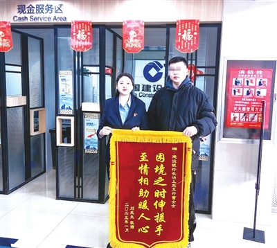 “困境之时伸援手,至情相助暖人心。”1月4日,市民刘先生将一面锦旗送到中国建设银行长治上党支行行长曹卫红手中。