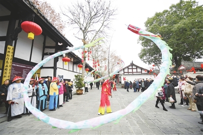这是1月7日在阆中古城拍摄的非遗展示展演巡游活动。