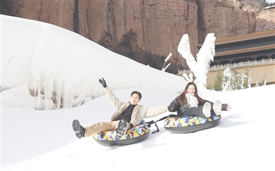 黄崖洞景区依托瓮圪廊峡谷鬼斧神工的天然崖壁地形,冰雪之后会形成美轮美奂的冰挂奇景。白天可以感受满目晶莹的震撼,入夜可以欣赏灯光之下的多彩梦幻。太行门广场雪乡长廊,配合缥缈梦幻的雪地极光,游客将感受到如梦似幻的雪地美景。同时还有千米超级雪滑道、冰雪乐园区、夜间梦幻冰雪灯光秀、特色美食小吃等体验性活动,丰富游客春节游玩体验。