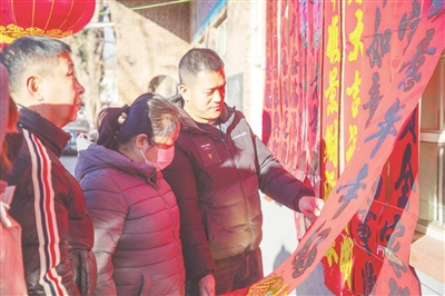 “目前,灯笼订购了5000多个,对联订购了1万余副,每天下午来的人比较多,生意还可以,我们会根据需求进行补货。”村民冯俊宏为顾客展示各式各样的春联并耐心讲解。