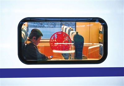 1月14日,乘客乘坐西宁至呼和浩特东的D2822次动车组列车出发。新华社记者 张龙 摄