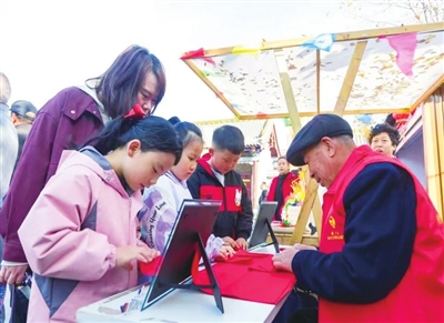 “这些春联和‘福’字都是书法爱好者亲手写的,特别有年味儿,我要把它们贴在门上,迎接新年的到来……”居民李阿姨捧着刚写好的春联,满脸喜悦地说道。