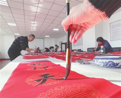在市文化馆群众文化中心,来自市职工书画家协会的书法爱好者齐聚一堂,为市民写春联、送福字,共迎新春佳节。
